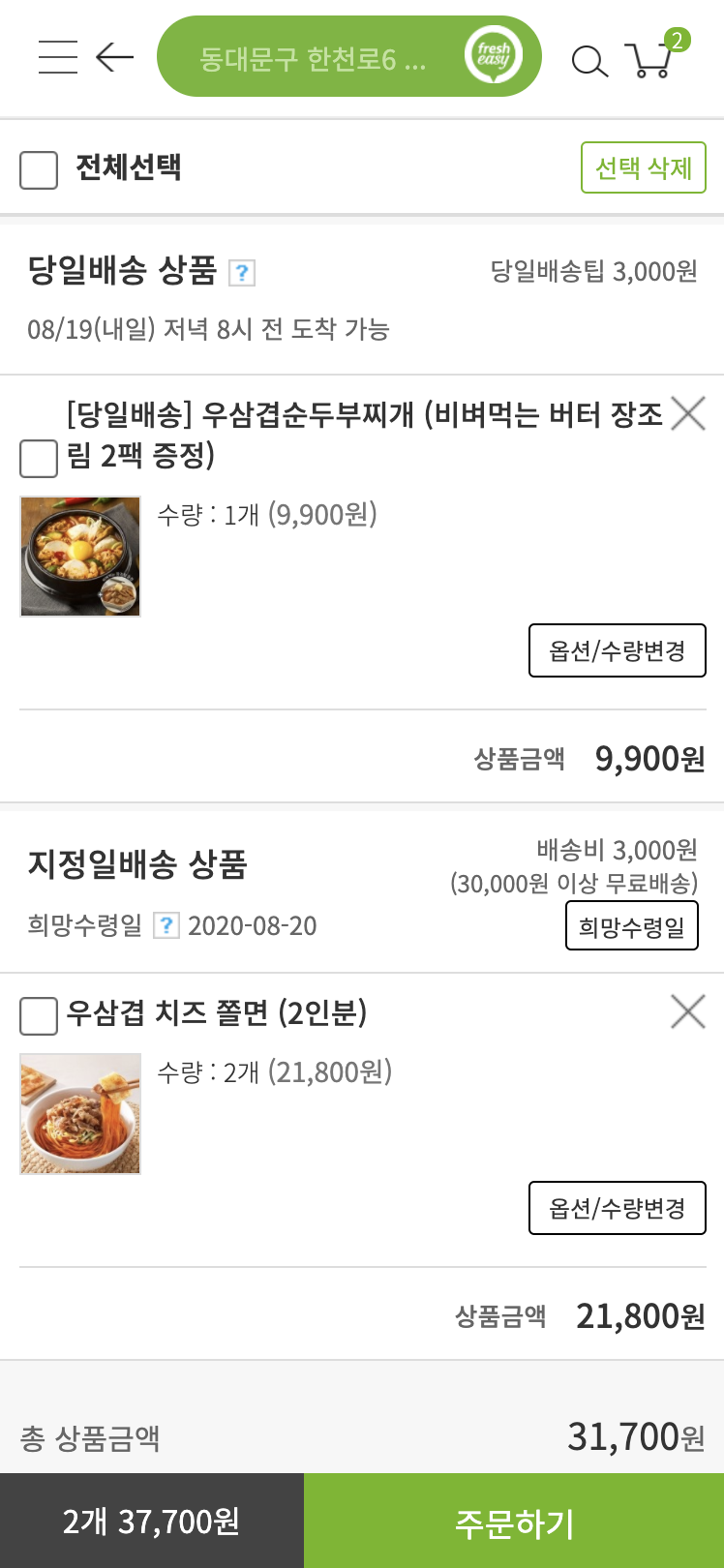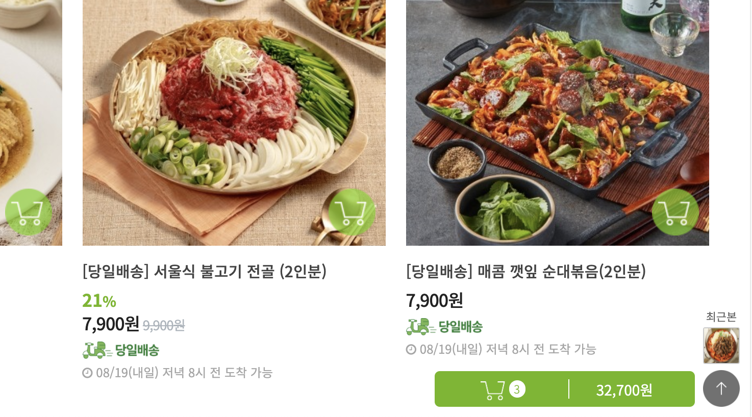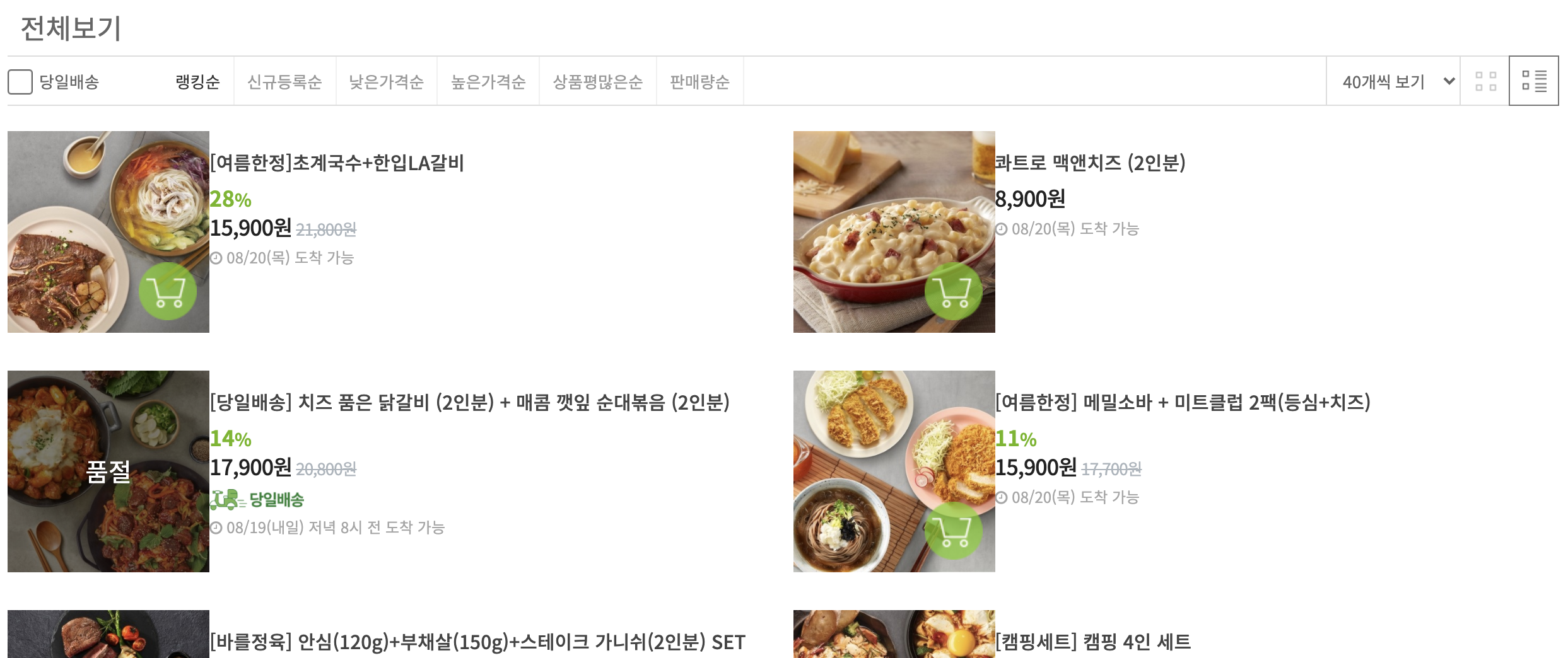 - 당일배송과 지정배송의 배송비가 구분되는데 배송비를 절약하려 더 구매하는 사람도 있으니 배송비도 노출하면 좋을 것 같음