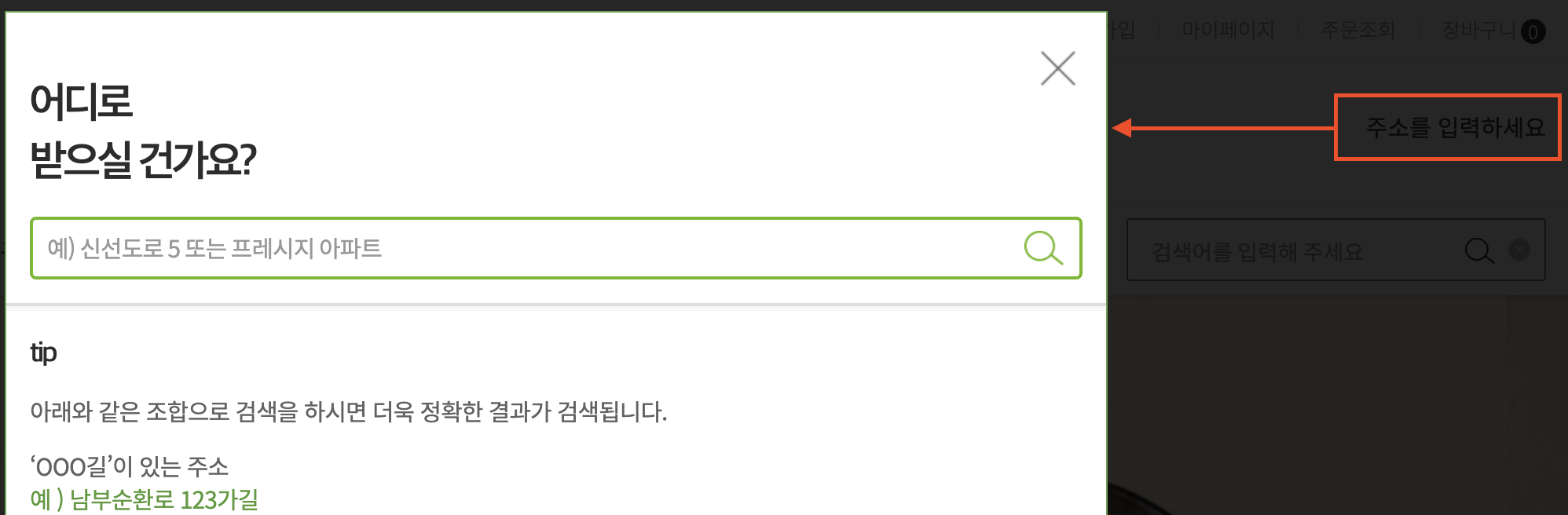 - 결제 직전에 로그인을 요청하며 로그인하면 등록한 주소를 그대로 노출