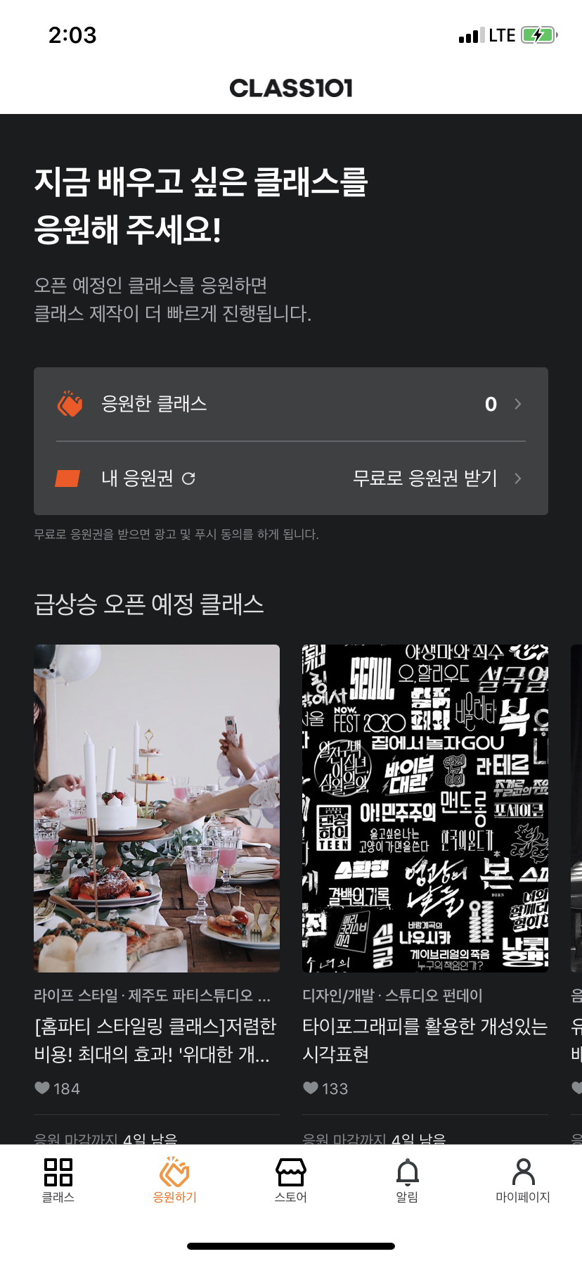 [응원하기] - 수익 가능성이 있는 클래스에 대한 투표인 것 같음 - 사용자들의 관심도를 수집할 수 있고 응원한 클래스가 오픈했을 시 할인금액으로 이용 가능 |