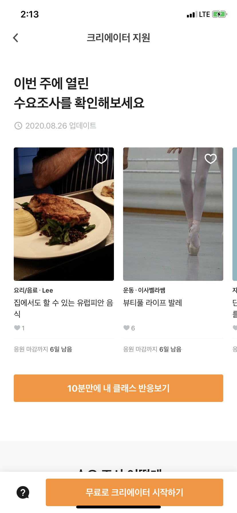 [응원하기] - 수익 가능성이 있는 클래스에 대한 투표인 것 같음 - 사용자들의 관심도를 수집할 수 있고 응원한 클래스가 오픈했을 시 할인금액으로 이용 가능 |