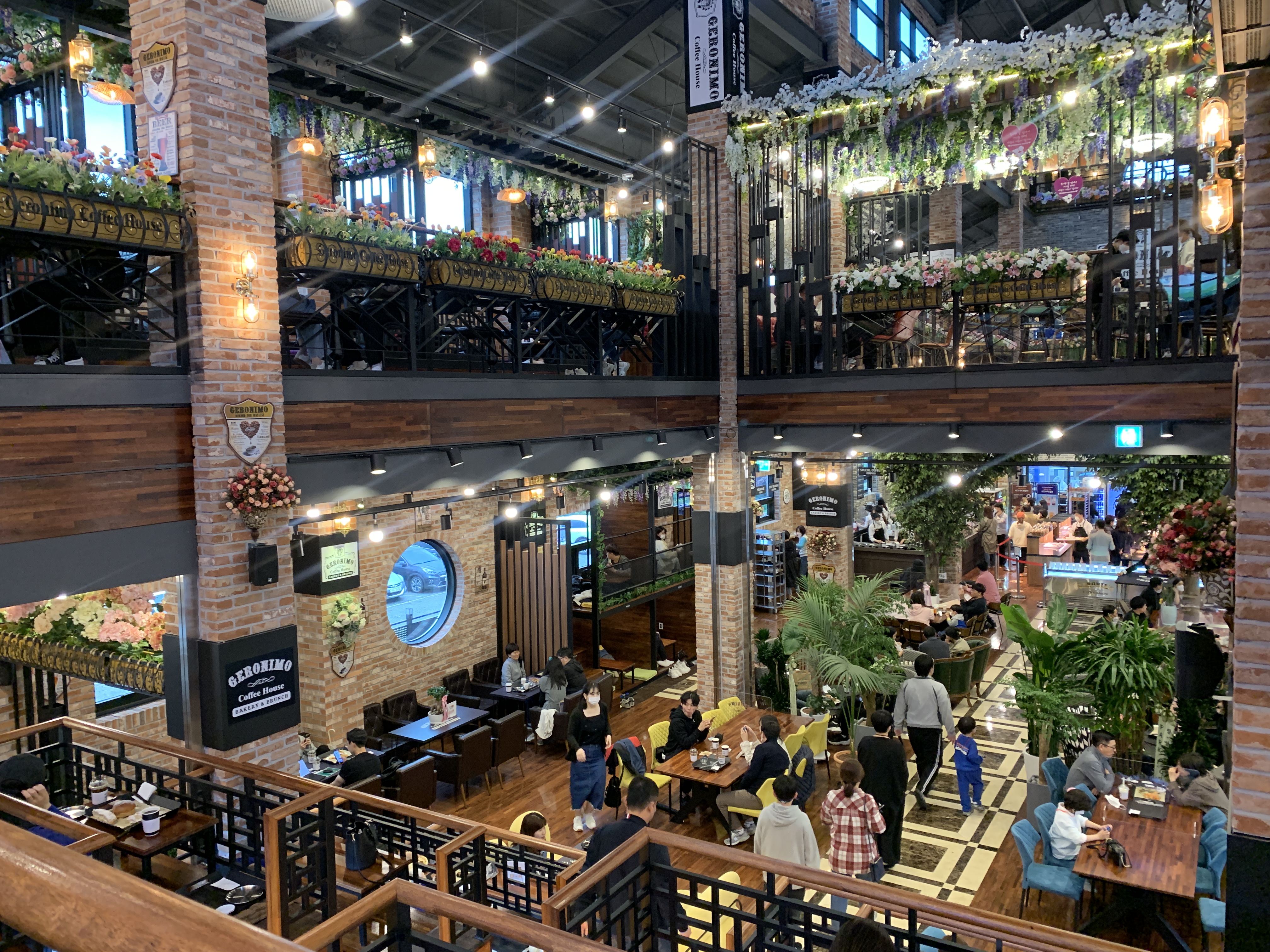 내부 정원같은 꽃 장식과 한국스러운 좌식 테이블에 흥미로움